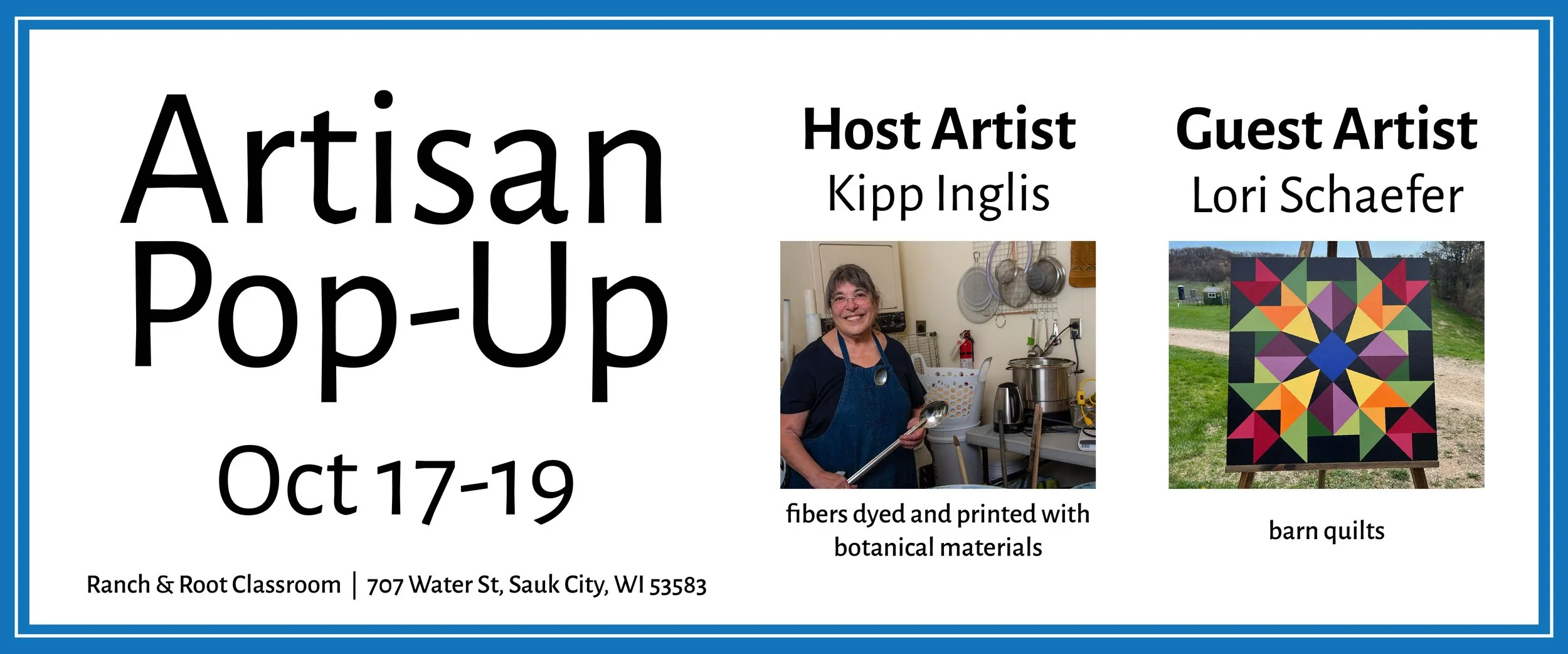 Join ME for my first for an Artisan Pop-Up at Ranch and Root Sauk in Sauk City on October 17–19, 2025! I’ll have a fresh collection of new, hand-dyed, hand-printed, and hand stitched items on display and available for purchase throughout the weekend. I’ll also be joined by my good friend Lori Schaefer, known for her stunning metal Barn Quilts.
